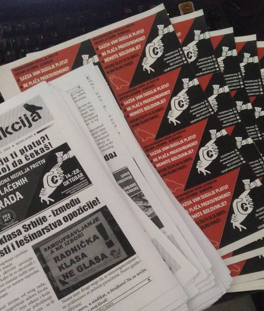 Tokom nedelje borbe protiv neisplaćenih zarada, Anarhosindikalistička inicijativa sprovela je niz propagandnih akcija u više gradova Srbije. Između ostalog, novi broj Direktne akcije podeljen je radnicama i radnicima ispred većeg broja proizvodnih pogona.